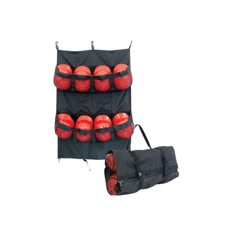 - Mesh pockets holds 8 helmets with or without face masks