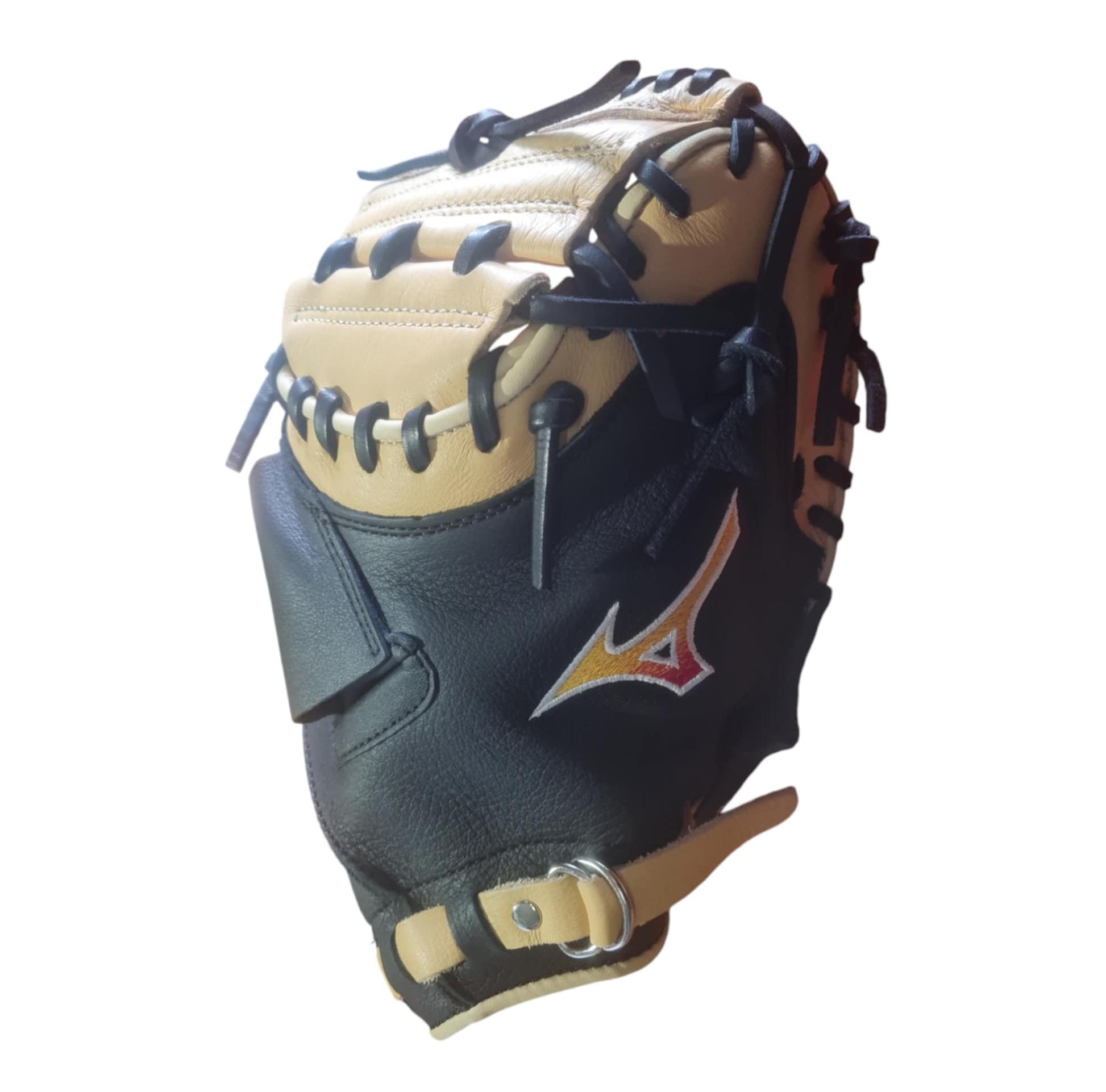Ideal for catchers seeking a durable, comfortable, and ready-to-play glove, the Mizuno Franchise 33.5" Catcher's Glove delivers top-notch performance and a stylish black and cream design.