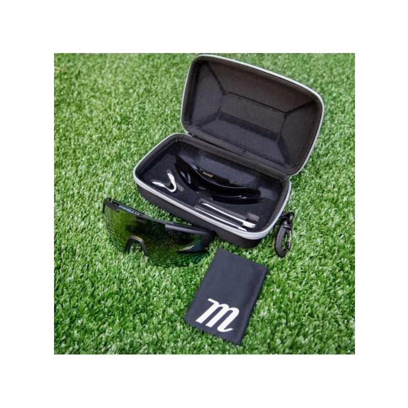 The Marucci Shield 2.0 performance sunglasses are designed for optimal on-field use. The lenses, made by Carl Zeiss Vision, enhance clarity and improve visibility while balancing color perception to create high-performing sunglasses.